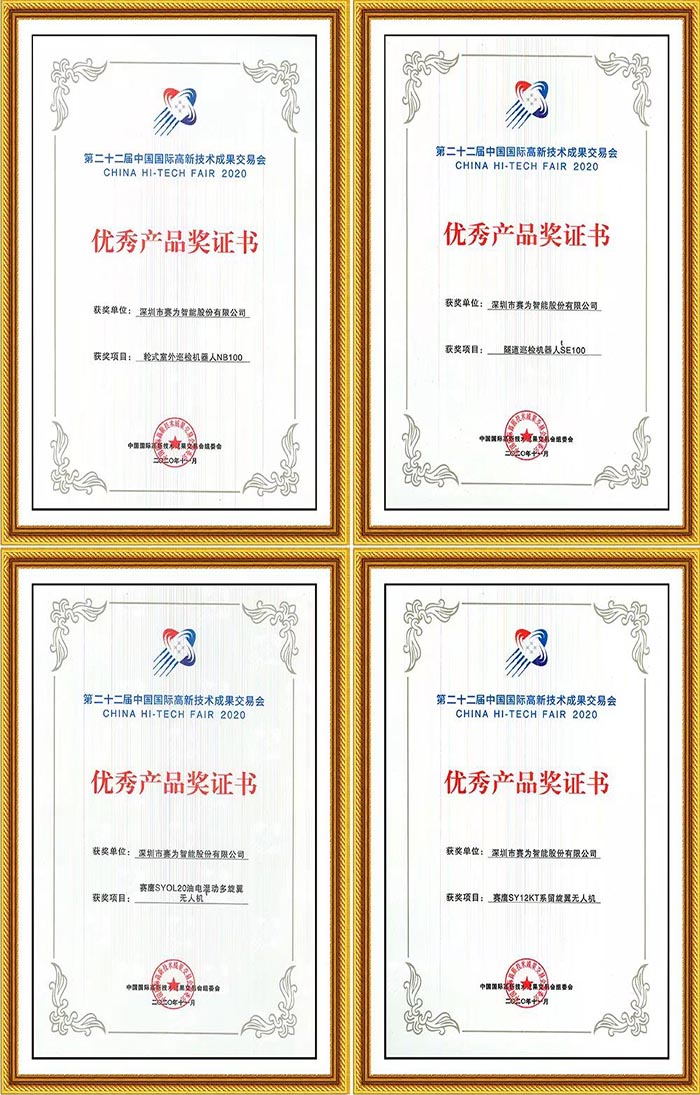 在为期5天的高交会上,经过业内专家学者严格评审,MKsports(中国)官方网站智能展出的SE100隧道巡检机器人、NB100轮式室外巡检机器人、赛鹰SY12KT系留旋翼无人机、赛鹰SY OL20油电混动无人机新品,被大会授予2020高交会优秀产品奖。