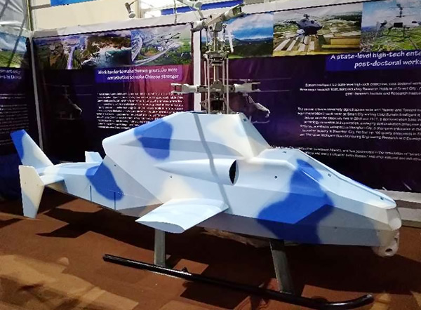 陈志宏透露,赛鹰450H采用共轴双旋翼设计技术,其技术含量高、飞行稳定性、载重能力强,机身长度是常规布局直升机长度的70%,便于行军运输和飞机作业。该型机动力系统采用115马力涡轮增压航空发动机,解决了因高海拔飞行发动机动力损失过大的问题,可作为察打一体、战场物资运输、边防巡逻等军事用途无人直升机平台,也可用于大载重农业植保作业、航拍航测和科研试验等多个领域。